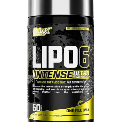 LIPO 6 BLACK INTENSE 60 caps. de la marca NUTREX, altamente concentrado donde se recomienda solo 1 cápsula para obtener los resultados. Con un efecto termogénico que favorece el aumento en el estado de alerta mental y además entrega energía de manera inmediata. Favorecerá una reducción de peso según tu meta. Para garantizar un mejor efecto, todos los ingredientes de esta fórmula son naturales y permitidos en nuestra legislación.