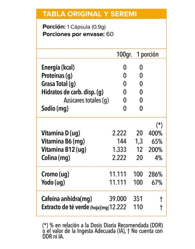 MODO DE USO: Consumir 1 porción (1 cápsula) con abundante agua. Consumo máximo 2 porciones al día.