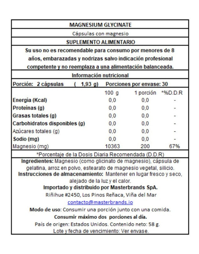 Nuestro glicinato de magnesio no contiene GMO y no contiene gluten, trigo, levadura, leche, lactosa, soja, colorantes artificiales, saborizantes artificiales, edulcorantes artificiales ni conservantes.