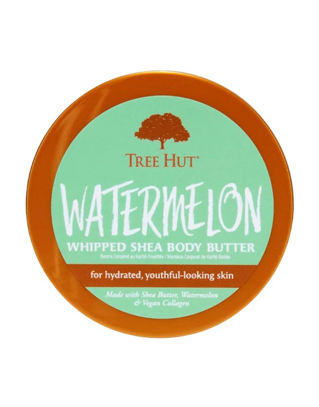 Manteca Corporal Batida, Sandia, 240 gr. Tree Hut. La mantequilla corporal batida de Sandía de Tree Hut es el tratamiento perfecto para tu piel después del baño, o como refrescante para tu piel. ¡SI! Vuelve a poner en forma la hidratación de tu piel sin la sensación pesada de las cremas corporales tradicionales.