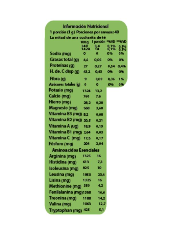 Moringa, 40g.Dulzura Natural. El 27% de la hoja de Moringa está compuesto por proteína. De los 20 aminoácidos que el cuerpo necesita a diario para vivir, 9 son esenciales y el cuerpo no los produce por sí solo. La Moringa contiene 18 de ellos y dentro de estos están los 9 aminoácidos esenciales. Leer más...