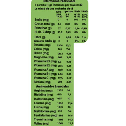 Moringa, 40g.Dulzura Natural. El 27% de la hoja de Moringa está compuesto por proteína. De los 20 aminoácidos que el cuerpo necesita a diario para vivir, 9 son esenciales y el cuerpo no los produce por sí solo. La Moringa contiene 18 de ellos y dentro de estos están los 9 aminoácidos esenciales.