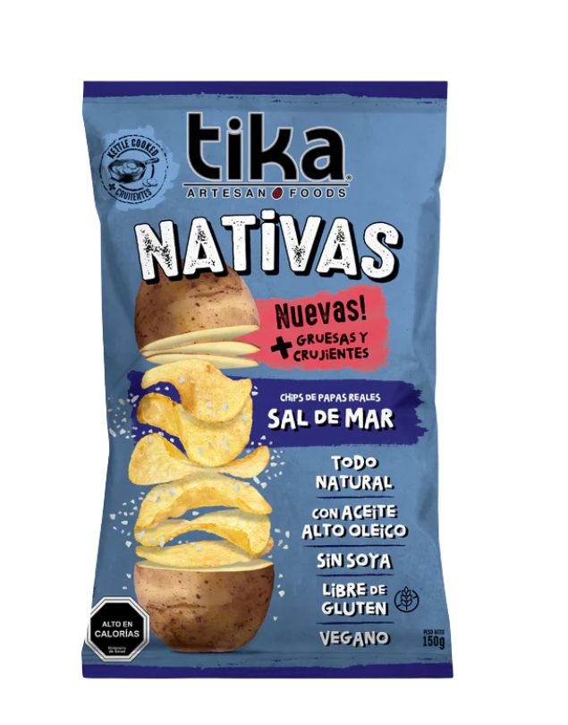 Nativas Chips Papas Reales Sal de Mar, 150 gr. Tika. Las Tika Nativas sabor Sal de Mar ofrecen la combinación perfecta de sal marina y textura crujiente. Ideales para quienes disfrutan de sabores simples pero deliciosos. Perfectas como snack o para acompañar platos gourmet. Leer más...