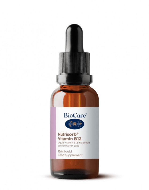 Nutrisorb Vitamina B12 Liquida, 15ml. Marca BioCare. Nutrisorb B12 proporciona vitamina B12 como Hidroxocobalamina en formato líquido, en una base simple de agua purificada, hipoalergénica y de alta absorción.