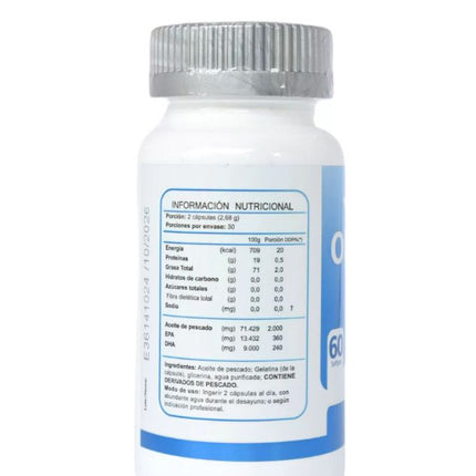 Omega 3, 60 Softgel.FNL. El Omega-3 es un acido graso esencial, es decir, que el cuerpo no puede producirlo naturalmente. Se encuentra presente principalmente en pescados grasos como el salmón o el bacalao. Esta compuesto mayoritariamente por acido eicosapentaenoico (EPA) y acido docosahexaenoico (DHA), ácidos grasos poliinsaturados omega-3 que desempeñan funciones vitales en el organismo humano.