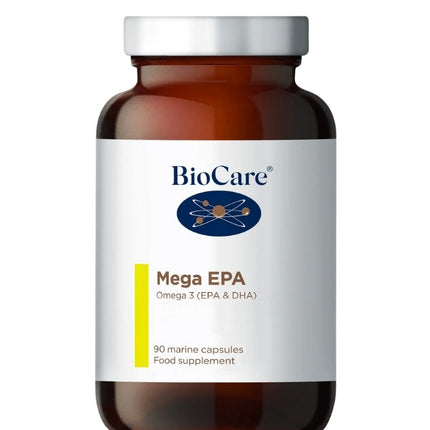 Omega 3 Mega EPA Aceite de Pescado, 90 cáps. BioCare. Cápsula blanda de alta potencia que contiene ácidos grasos Omega-3 (EPA y DHA) procedentes de aceite de pescado puro (sardinas y anchoas)
