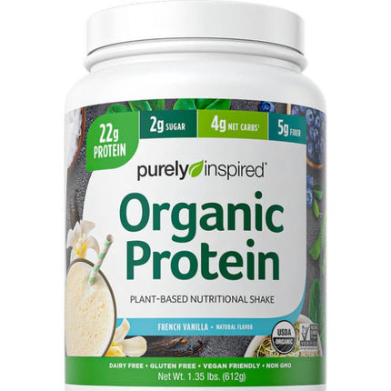 Organic Protein, proteína vegana sabor vainilla. Purely Inspired. Es una mezcla de proteína orgánica procedente de la arveja y el arroz integral, además de una mezcla de frutas y vegetales orgánicos en polvo. Organic Protein de Purely Inspired contiene LactoSpore® Bacillus coagulans MTCC 5856 (100 Billones/G). Fabricado sin ingredientes de soya, no contiene colesterol, azúcares de alcohol, colorantes artificiales, saborizantes y edulcorantes artificiales ya que aporta estevia.