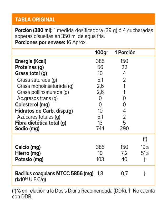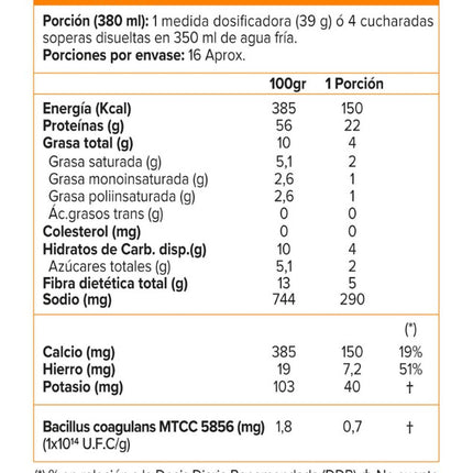 MODO DE USO: Agregar a un vaso mezclador una porción del producto con 350 ml de agua fría, agitar hasta lograr una mezcla homogénea.