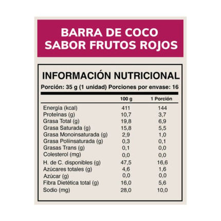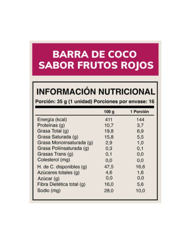 Pack de 16 Barras Wild Fit, Coco Berries, 35 gr. Wild Foods. Es la mezcla perfecta de coco, berries y chocolate. Con proteínas y fibra, es un snack saludable y energético. Además, es libre de sellos, sin azúcar añadida y con baja cantidad de carbohidratos netos.