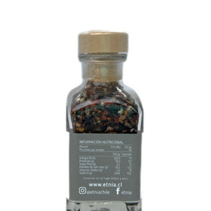 Pimienta Al Merquén, 28 gr. Etnia. Pimienta negra granulada mezclada con merkén. Etnia, tiene elaboración de productos que son parte de la gastronomía chilena, tiene sabores autóctonos que ponen en un lugar de excelencia a Chile.
