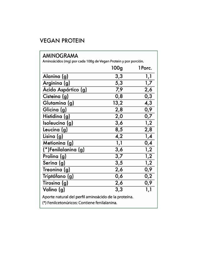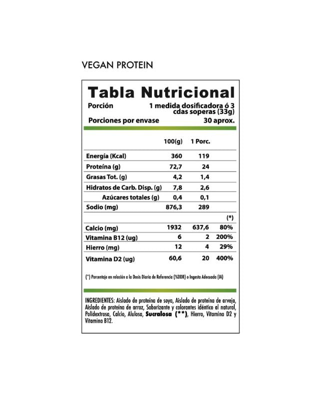 Vegan Protein se encuentra enriquecida con micronutrientes esenciales para las personas que no consumen alimentos de origen animal.  Estos nutrientes son: Vitamina B12, Hierro y Vitamina C.