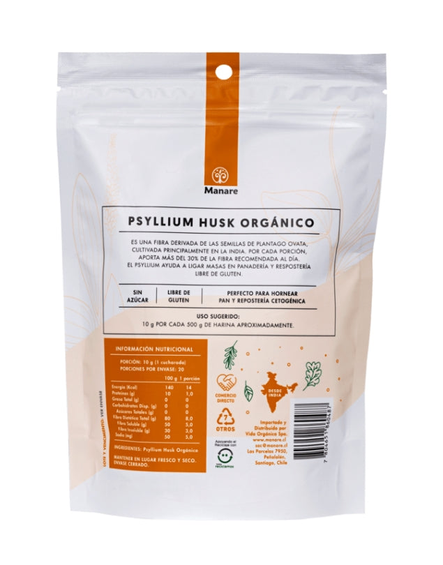 Ingredientes: psyllium orgánico en polvo 100%. Mantener en un lugar fresco y seco.