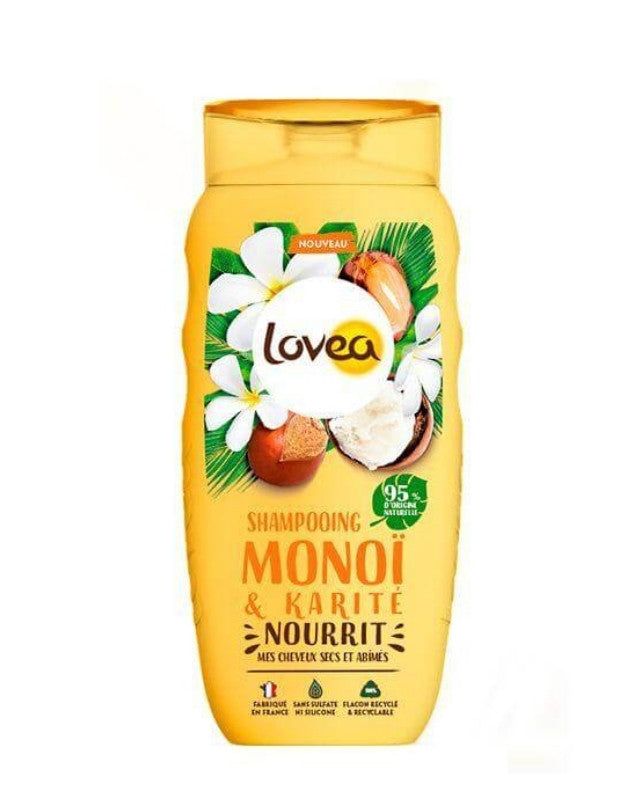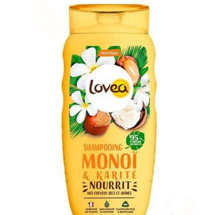 Para cabello seco, Fórmula respetuosa - 250ml. Libres de siliconas y sulfatos. El shampoo de Lovea es una exquisita combinación de ingredientes de origen natural para cuidar tu cabello: Aceite de Monoi y Karité que entregan una cremosa y generosa espuma. Tu cabello queda hidratado, suave, brillante y con un increíble aroma. Ideal para porosidades medias y altas.