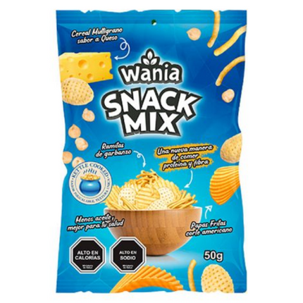 Mix de snacks sabor queso. Alto en proteínas con ramitas de garbanzo, papas centrifugadas corte americano y multicereal. Contiene queso.