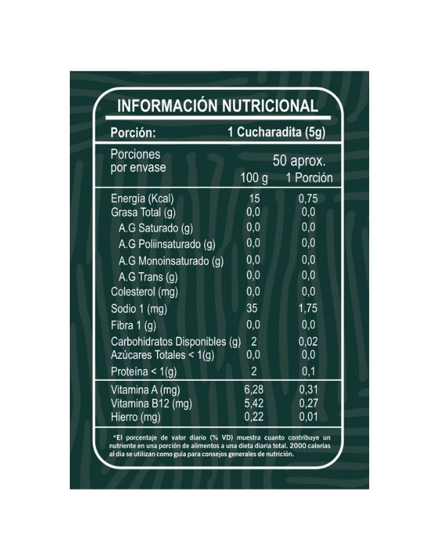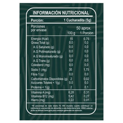 • Dosis Recomendada: 1 a 2 cucharaditas (5-10 gramos) al día.