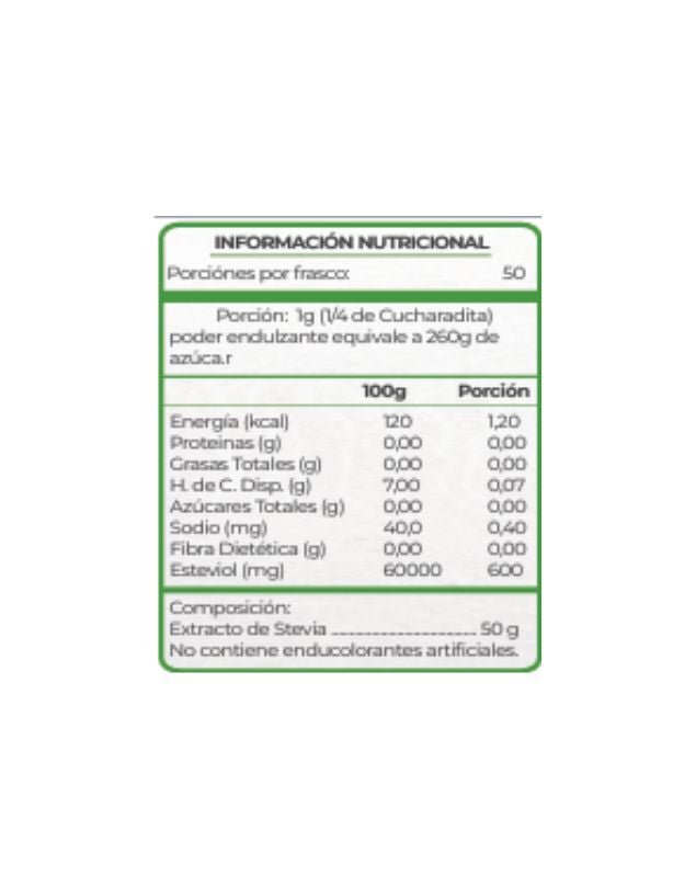 Stevia Granulada, 50 g. Health Natural. Puede ser utilizada sin ningún problema por personas diabéticas ya que no afecta para nada los niveles de azúcar en sangre. Leer más...