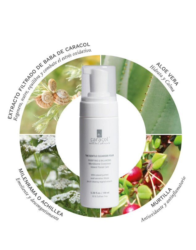 Suave Mousse Limpieza, 150 ml. Caracol Natural Skincare. Limpia, calma, hidrata y regenera. Todo tipo de piel. Suave mousse de limpieza para la cara y el cuello, es un paso esencial en el cuidado diario de su belleza, este ayuda a múltiples propósitos como limpiar, hidratar y regenerar la piel. El extracto purificado de baba de caracol ha sido enriquecido con extractos de plantas para reducir la irritación, purificar, suavizar y calmar la piel. La mezcla de Ortiga, Romero, Salvia, Abedul, Milenrama, Tilo, Equiseto y Aloe Vera le dejaran una piel radiante y naturalmente balanceada. Libre de aceites. Uso: Día y noche. Todo tipo de pieles. 10% de extracto filtrado de baba de Caracol.