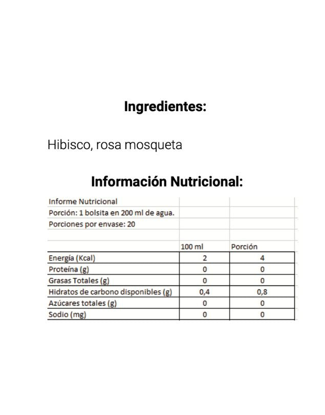 Té de Jamaica (Hibisco) sin Stevia, 20 u