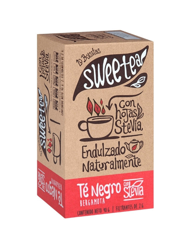 20 Bolsitas de Té de Negro Bergamota SweeteaCada bolsita está endulzada con la medida justa de hojitas de stevia natural para que no tengas que agregar edulcorantes artificiales o azúcar y así obtengas incluso más beneficios.