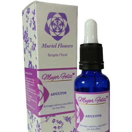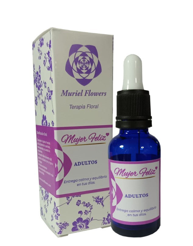 Terapia floral mujer feliz, adulto, 30ml. Muriel Flowers. Mujer Feliz entrega calma y equilibrio durante tu período, menopausia y cuando lo requieras. Leer más...