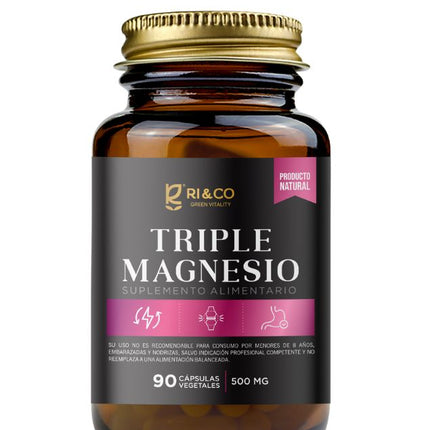 Triple Magnesio, 500 mg, 90 caps. Ri&Co. Combinación Avanzada de Magnesio para el Bienestar Triple Magnesio combina tres formas de magnesio (Malato, Bisglicinato y Taurato) para ofrecer una acción completa en el cuerpo.