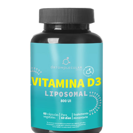 Vitamina D3 Liposomal 800 UI, 60 cápsulas, Ortomolecular. La vitamina D3 es la vitamina que podemos obtener de una fuente natural que no es alimento, el sol. Esta vitamina ayuda a regular el calcio y homeostasis del fósforo en el cuerpo y contribuye con el fortalecimiento de varios sistemas del cuerpo humano.