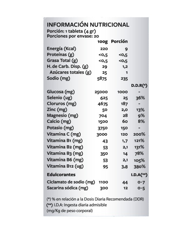 Xtreme Boost Hydration Limón, 20 tab. German Energy. Un Boost de Hidratación, una fórmula de electrolitos, glucosa, vitaminas y minerales. Los electrolitos ayudan a regular el equilibrio de líquidos en nuestros cuerpo. La glucosa es una fuente de energía para tu actividad diaria. Las vitaminas y minerales contribuyen a mantener el funcionamiento muscular y del sistema nervioso.